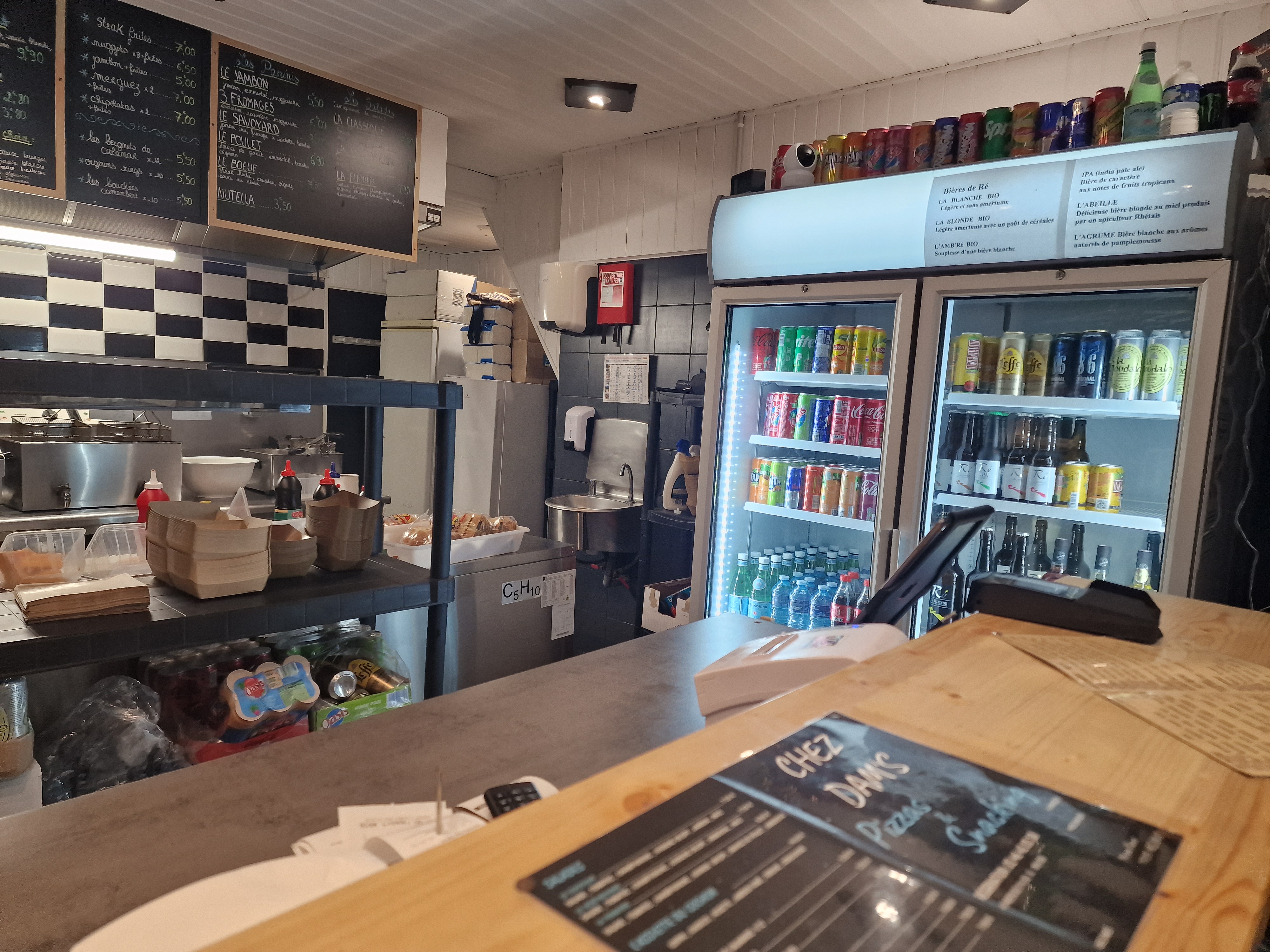Patron super agréable ! Avec le sourire ! Bonne ambiance ! J’ai commandé un paninis je suis repartit avec un panini et une pizza gratuite ! Ma soirée est refaite ! Je recommande Chez Dam’s