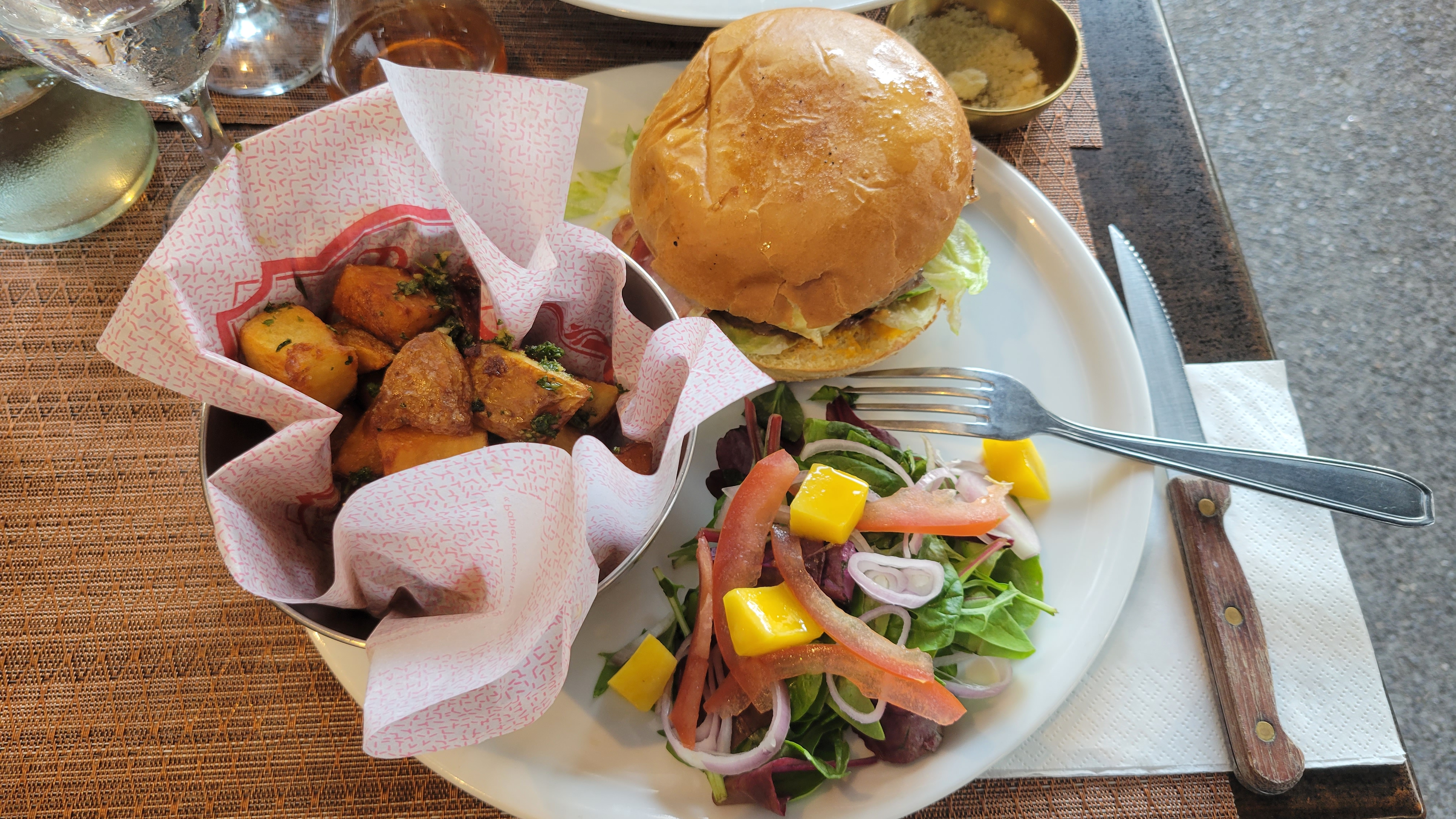 De l'extérieur, cela semble assez simple et discret. La nourriture était incroyable 🤩. Burger définitivement fait maison ainsi que les frites. Vraiment fortement recommandé. Nous serions ravis de revenir car je n'ai jamais aussi bien mangé à ce prix. Le personnel était super sympa